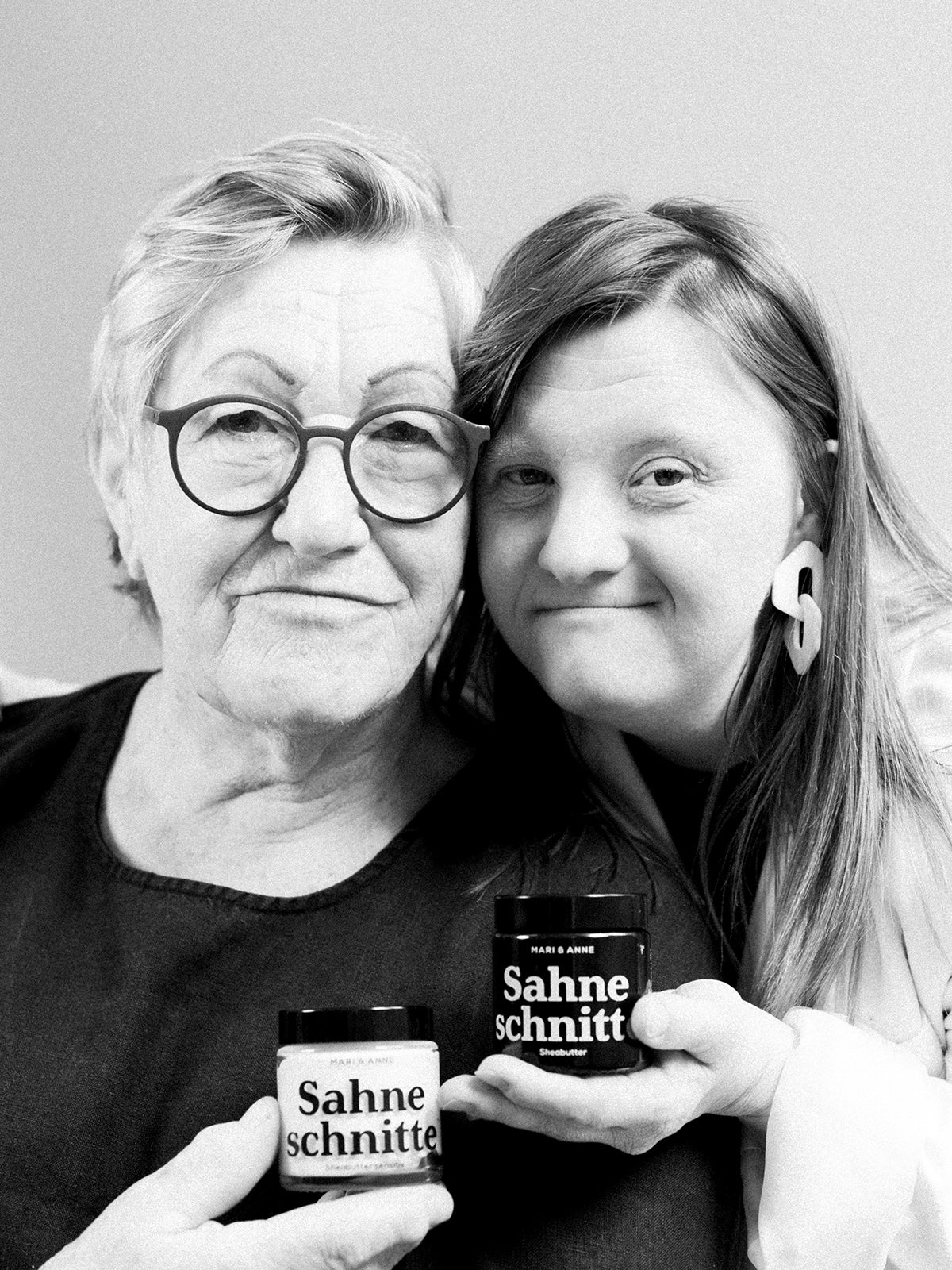 MARI & ANNE – nicht nur eine versteckte Hommage an ein kleines Familienunternehmen, sondern besonders auch an Marianne. Die Mutter der beiden Schwestern Sabine und Marina steckt hinter unseren Rezepturen und Produkten. Marianne hat in den 90er Jahren allein in ihrer Seifenküche die ersten Salben und Seifen auf Naturbasis hergestellt, um Sabine mit ihrer Hauterkrankung periorale Dermatitis Linderung zu verschaffen.