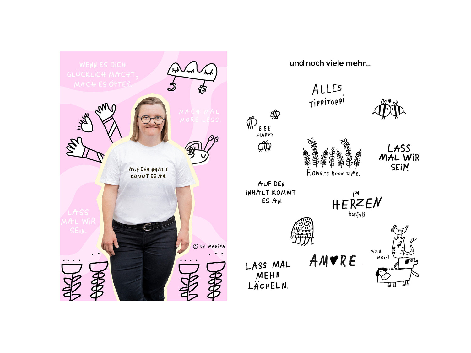 Wir sind uns sicher, alle Motive kommen unglaublich gut bei deinen Kund:innen, Mitarbeiter:innen, als Weihnachtsgeschenke oder auf Events an! Denn gleichzeitig setzt du ein Statement für Inklusion und hilfst dabei Marinas vielseitigen Arbeitsplatz bei uns zu sichern. Du hast Interesse?