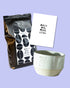 Zum Set kannst du dir zusätzlich einen handgefertigten Keramikbecher mit unserem Motto gedreht von Conni´s Töpferei aus Würzburg in beige oder weiß ergattern. Oben drauf gibts noch den passenden Reminder als Postkarte.